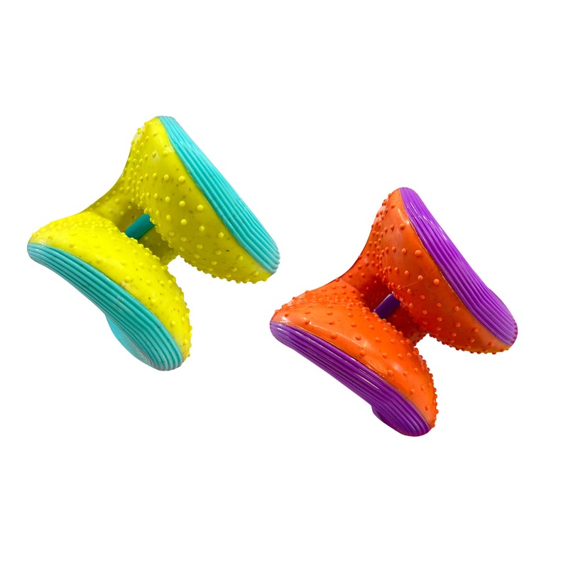KONG Rerun Whoosh delivers fetching fun with a spot to hold treats to reward puzzling pups. Shaped for dogs to hold comfortably, special nubs clean teeth and gums as they chew. Unique, whooshing sound sparks dogs natural instincts while the toys erratic bo