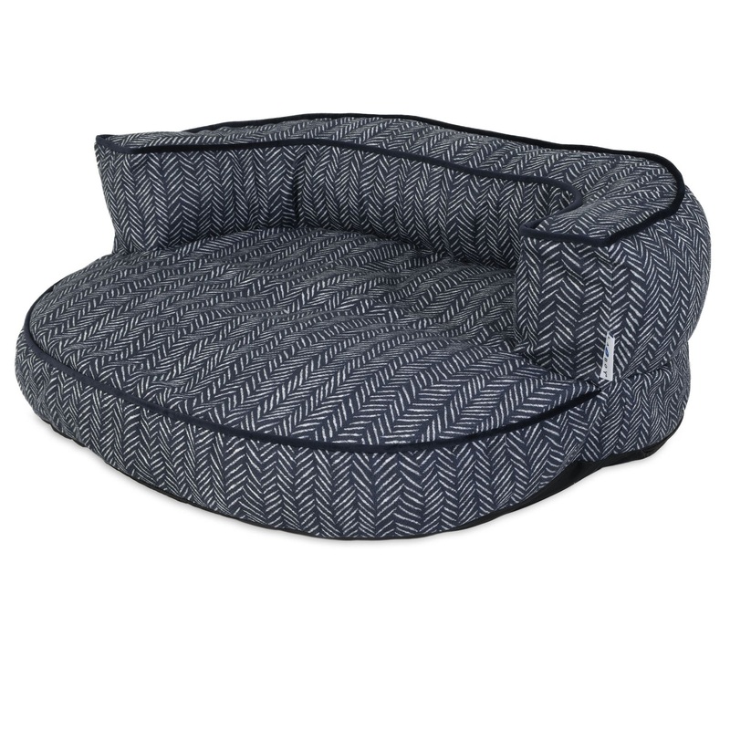 Keep your dog cool and comfortable indoor or outdoors with La-Z-Boy’s Gatson Outdoor Sofa Bed. Filled with La-Z-Boy’s luxurious, never-flat Comfort Select Fiber so that the sleep surface never falls flat. Perfect for outdoor use, the Gatson Sofa Bed is covered in a beautiful Indigo Herringbone fabric that is UV and fade resistant, water resistant, and mold and mildew resistant. Features include an added bolster that provides support for your pet’s head and neck and caters to dogs that tend to sprawl out when they sleep. Measuring 36 inches long by 30 inches wide, this bed is ideal for most dog breeds and fits in with today’s outdoor living styles. Also great for fitting with casual indoor decor styles as well.