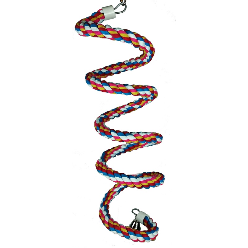 Large Cotton Rope Boing with BellTechnical DetailsExterior Dimensions: 96" x 1"Product FeaturesMade out of durable cotton and rope wrapped around flexible metalHas a bell attached at the bottomDurable construction for extended usesEasily clips to the top o