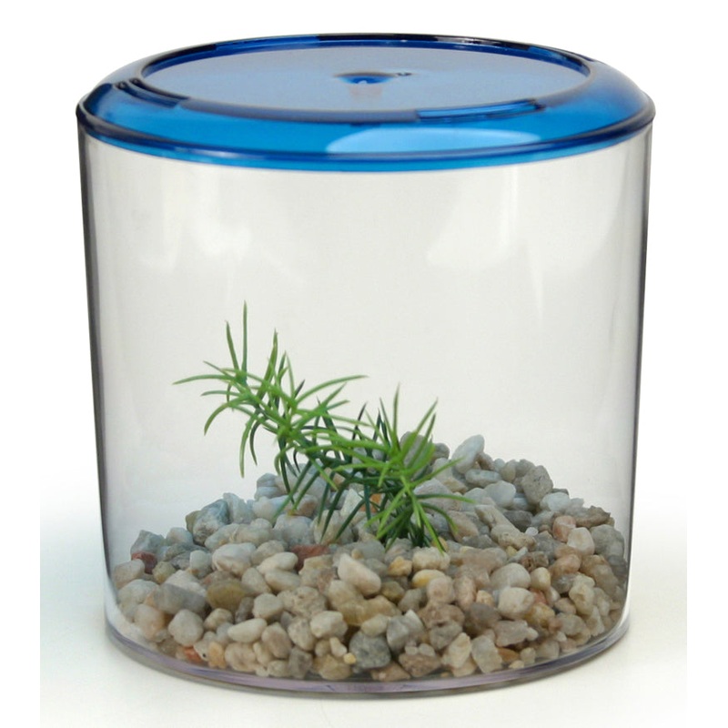 Has convenient feeding hole. Includes plant and gravel. Ideal for home or office. Great gift idea for Betta fanciers. 5.5″ x 5.5″ x5.5″ holds 36oz with Gravel & 40oz without Gravel