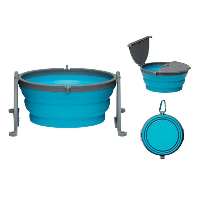 Collapsible design makes it quick and easy to fold away compactly during travel or while in storageBuilt-in folding legs provide support while your pet is eating or drinking, preventing the bowl from tipping or spillingConveniently store dry food or treats