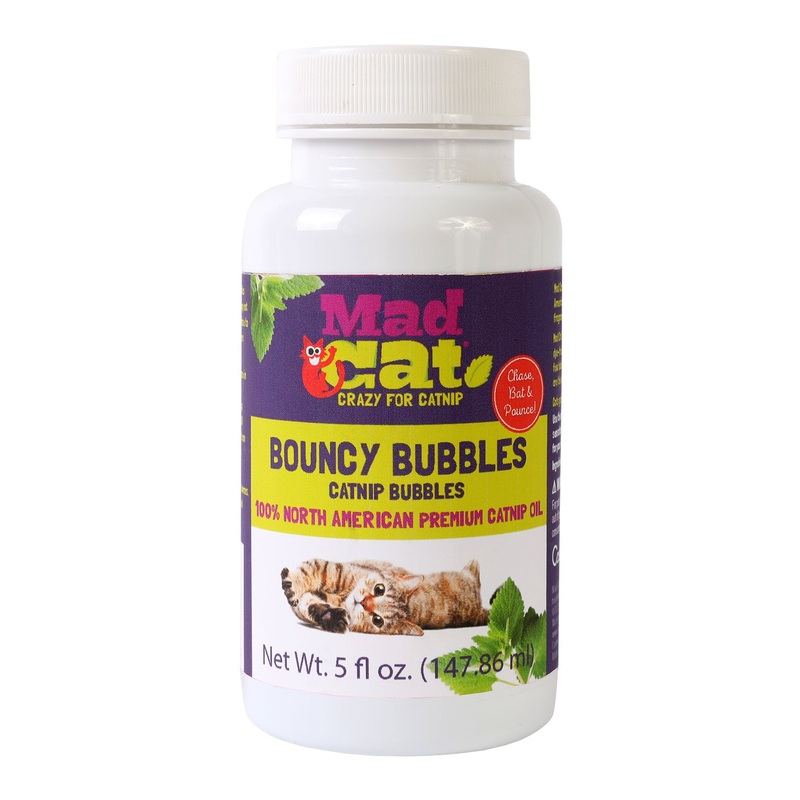 Mad Cat Catnip Bouncy Bubbles are made from a completely safe, non-toxic formula, this bubble mix allows cat parents to shower their feline friends with the sensational scent of catnip, with bubbles that are perfect for chasing and batting. Not only does i