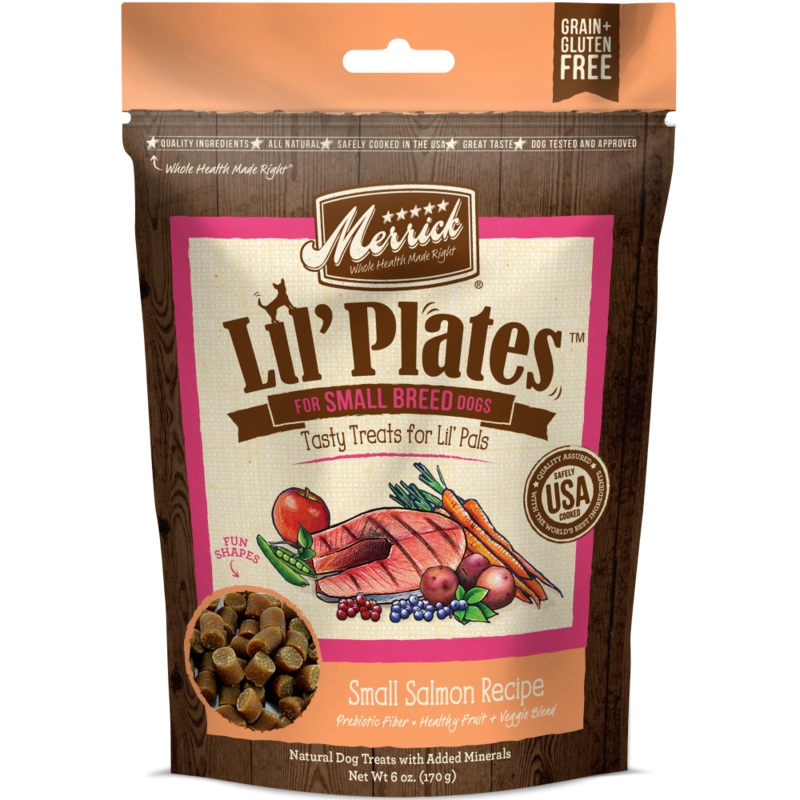 Lil dogs will be sitting and staying for joy with new Merrick Lil Plates treats made just for them. These grain-free, gluten-free treats are big on flavor and protein, but small in size for their tiny mouths. These soft and chewy recipes start with real de