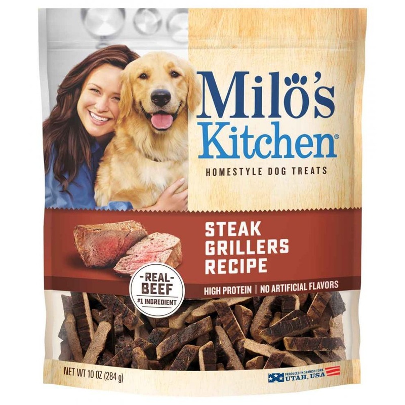 Milo's Kitchen Steak Grillers Recipe is a home-style bite of mouthwatering, tender meaty strips with real beef! Treat your furry family member to a wholesome snack thats grilled to perfection for an authentic beef taste made right here in the USA.Home-styl