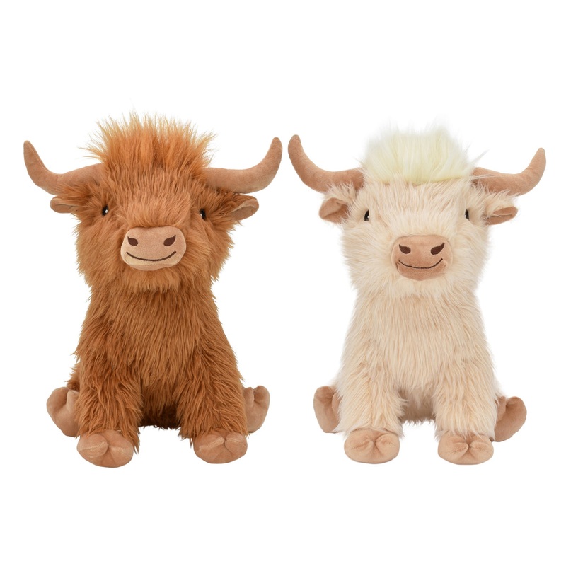 Our Highland Cow is ready to moove into every dogs toy bin! With shaggy fur, long horns, and soft plush interior, this dog toy perfectly captures the iconic Scottish farm animal. Measuring in at 8 inches and 14 inches, our Highland Cows are great for large
