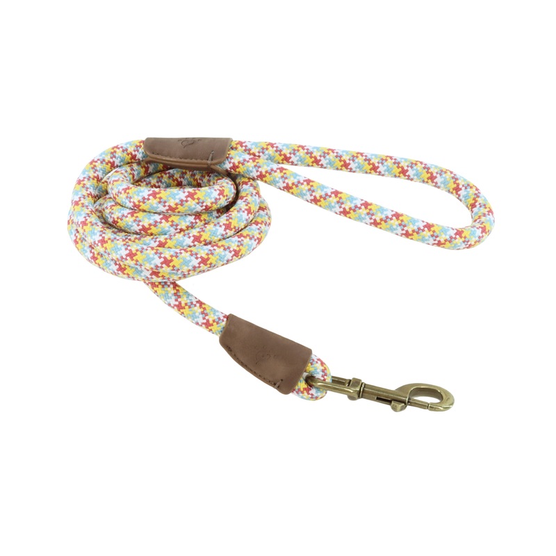 This leash is the perfect addition to your dog-walking arsenal! The MuttNation Fueled by Miranda Lambert Patterned Woven Rope Leash for Dogs is made of durable, comfortable rope with a vibrant, colorful pattern. The bolt snap is rust-resistant, making it p