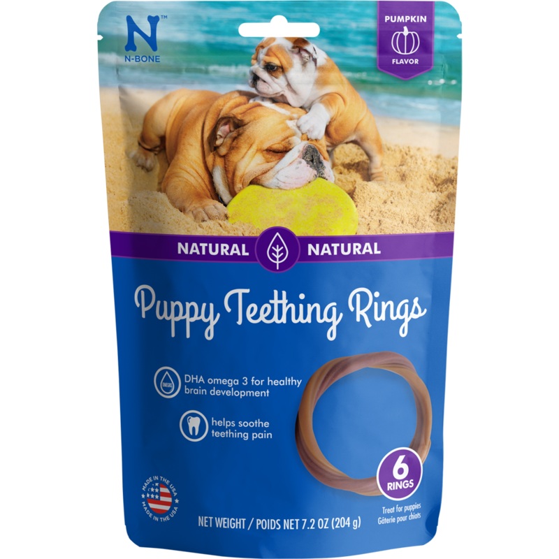 N-Bone Puppy Teething Rings are easy for floppy puppy paws to hold onto and provide a soothing and appropriate outlet for chewing. Formulated with DHA and calcium to support your puppys unique nutritional needs, our delicious pumpkin flavored rings are pli