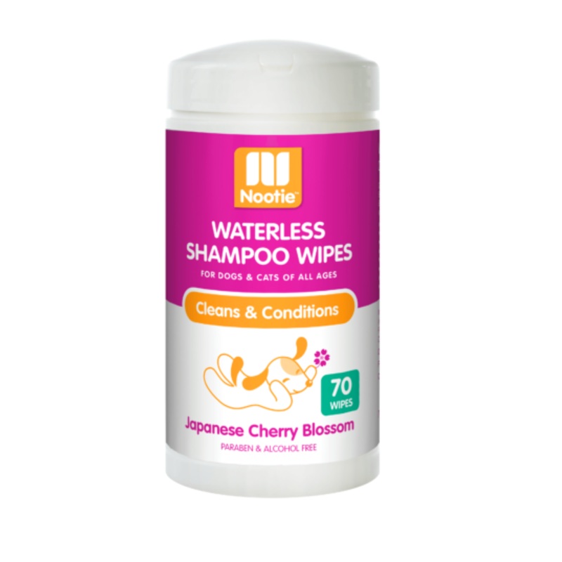 Give your pet a thorough daily cleaning with Nooties Waterless Shampoo Wipes. With the long-lasting fresh scent of Japanese Cherry Blossom, your pet will maintain a just-bathed cleanliness and fresh scent every day.Made with natural ingredientsCleans and c