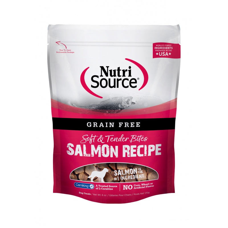 Made with high quality ingredients as well as added vitamins and minerals, NutriSource Grain Free Salmon Dog Treats are the perfect reward for your pup! These soft and chewy treats are made with real chicken and have L-Carnitine to help your pup burn fat.
