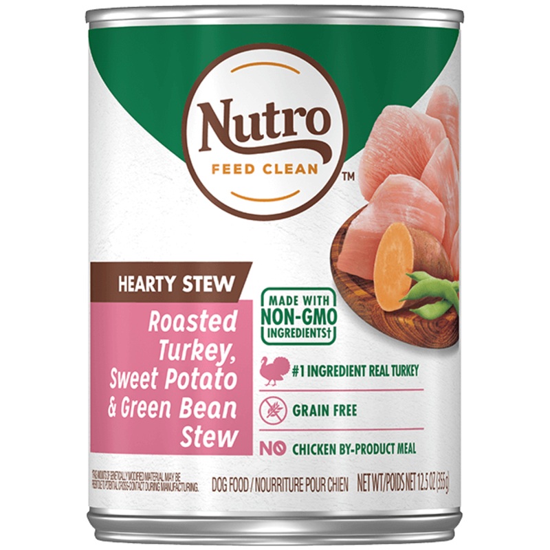 Your dog will do a happy dance when you open a can of NUTRO HEARTY STEW Roasted Turkey, Sweet Potato & Green Bean Stew. Farm-raised turkey is the first ingredient in this delicious grain-free canned wet dog food, and it's rich in nutrients and full of flav