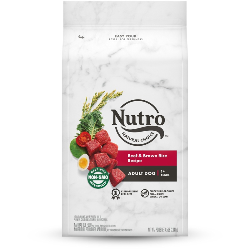 Give your pet the wholesome ingredients they love with NUTRO NATURAL CHOICE Dry Dog Food recipes. Made for dogs ages 1 year and older, this dry food provides essential antioxidants for healthy immunity and natural fiber for healthy digestion. Its formulated with omega-3 and -6 fatty acids to help give your dog healthy skin and a soft, beautifully shiny coat. As part of the NUTRO FEED CLEAN philosophy, this delicious beef and brown rice recipe starts with a high-quality protein source as the 1st ingredient and is made with real, recognizable ingredients sourced from trusted farmers and suppliers. Plus, it’s made with non-GMO ingredients* and has no chicken by-product meal, corn, wheat, or soy*. So you can feel good feeding your dog recipes that are rich in nutrients and full of flavor.
