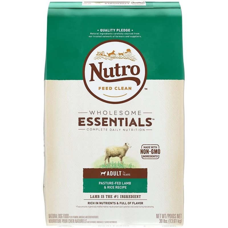 Nutro Wholesome Essentials Adult Pasture-Fed Lamb & Rice Recipe Dog Food always starts with pasture-fed lamb as the first ingredient. This natural adult dog food provides natural fiber for healthy digestion and essential antioxidants, such as Vitamin E, fo