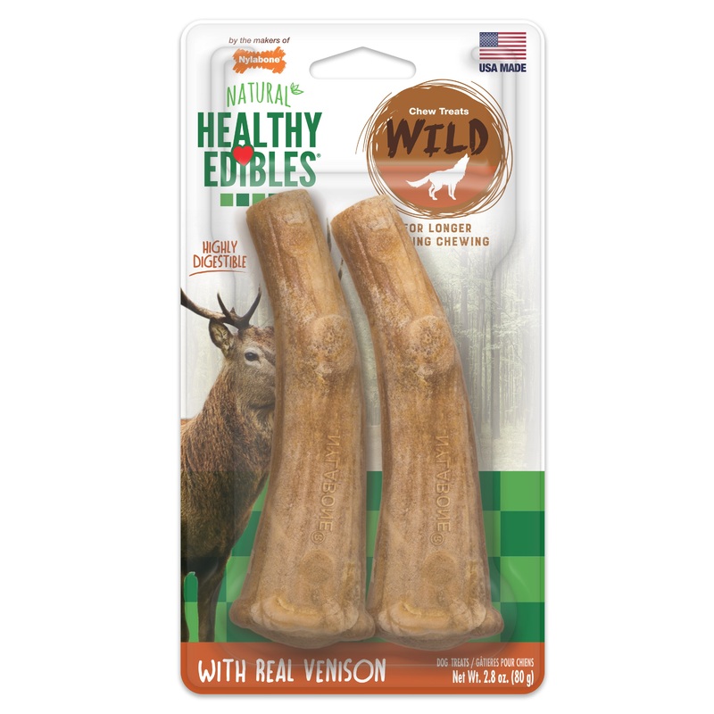 Nylabone Healthy Edibles WILD Antler Natural Long Lasting Venison Flavor Dog Chew Treats Mediaum (Pack of 2)