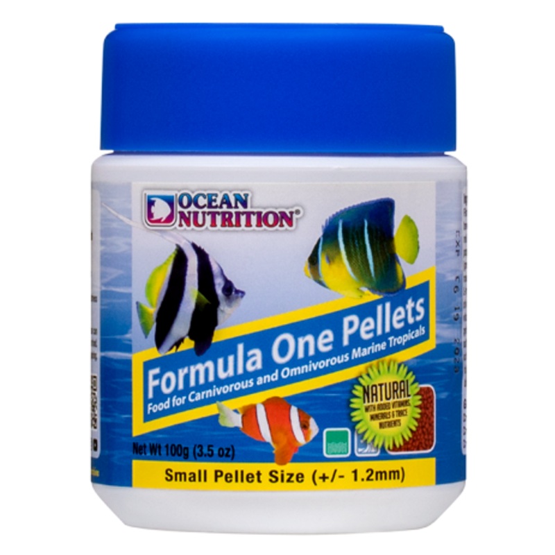 Ocean Nutrition Formula One Pellets are a protein-packed soft and moist slow-sinking food for all carnivorous (meat-eating) and omnivorous (meat and plant-eating) marine tropical fish. The pellets are formulated using fresh seafood and spirulina to provide daily nutrition with an appealing flavor fish cannot resist. The soft and moist nature of the pellets makes it easy for fish to digest them, so they produce less waste and your aquarium stays cleaner. Reward your fish with the food they deserve and feed them Ocean Nutrition!