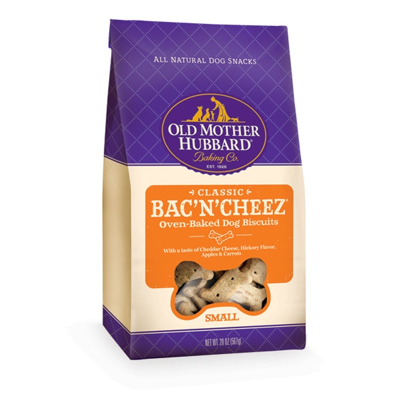 Your dog will love Old Mother Hubbard's Bac'N'Cheez basted dog biscuits. They are oven-baked to perfection with real Cheddar Cheese and Natural Canadian Bacon flavor.IngredientsWhole Wheat Flour, Oatmeal, Chicken Fat (preserved with mixed Tocopherols), Whi