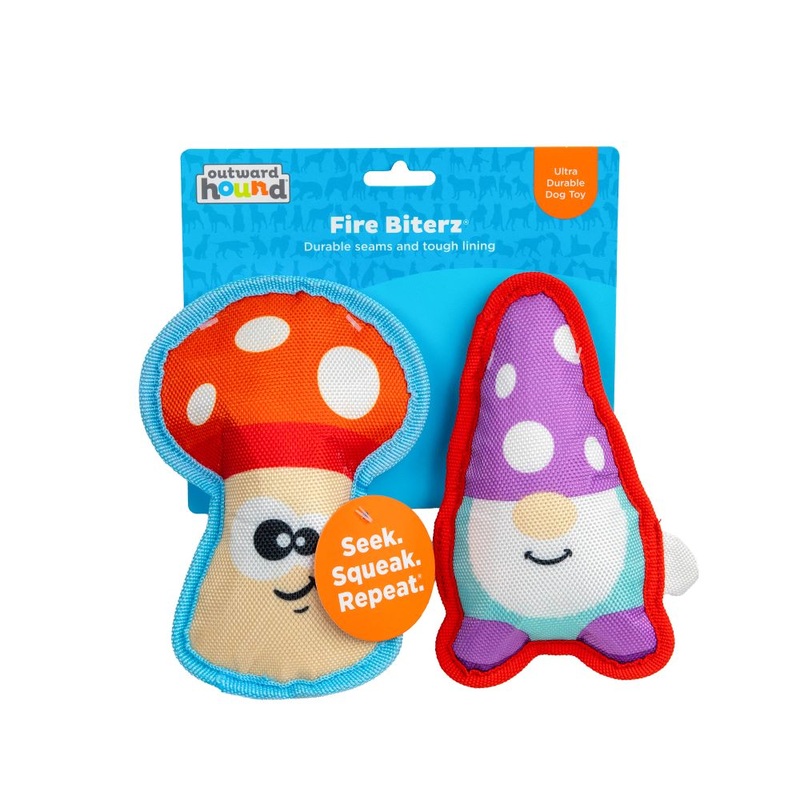 Outward Hound's Fire Biterz are a mess-free, durable version of your dog's favorite plush toy! Unlike traditional plush toys, Fire Biterz are designed with a special K9 Tuff lining, firehose material, and our signature Invincible squeakers to withstand hou