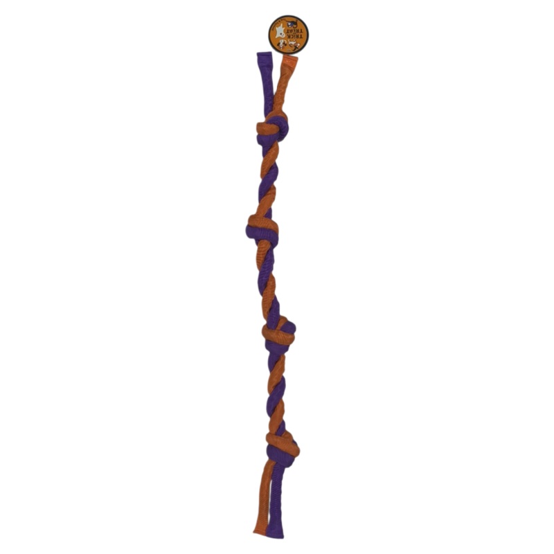 Tug-of-war just got spooky strong! Built for power chewers and serious tug sessions, this oversized rope toy features tightly braided strands covered in durable ballistic nylon. With festive Halloween colors in bold orange and purple, its a fang-tastic choice for interactive play all season long.