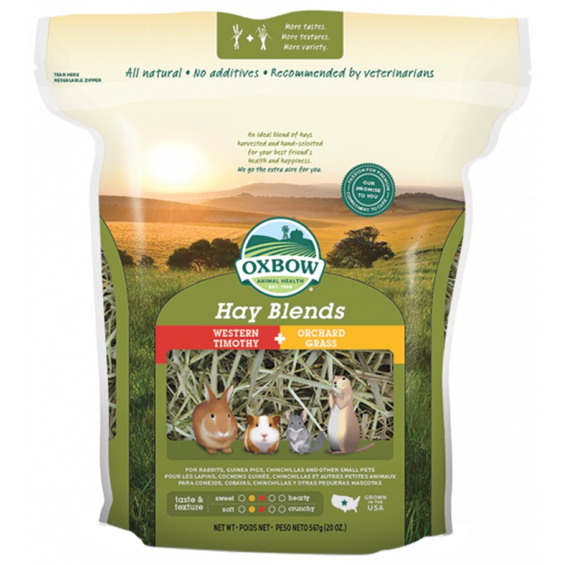 Small pets enjoy and benefit from variety in their daily diet. Thats why were so excited to offer our Hay Blends. Your pet rabbit, guinea pig or chinchilla is sure to love this enriching blend of premium Oxbow hays. We hand-select and blend Western Timothy and Orchard Grass to create the perfect blend of tastes and textures. Your pet should have unlimited grass hay every day.