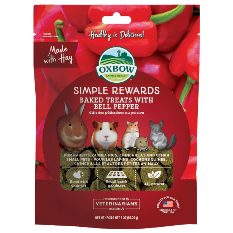 Baked treat goodness with a zesty twist! Made with flavorful red peppers and wholesome, high-fiber Timothy hay, Oxbow Simple Rewards Baked Treats with Bell Pepper are a delicious snack rabbits, guinea pigs, chinchillas and other small pets love. Feed Oxbow treats to add variety and enrichment to your pets diet.