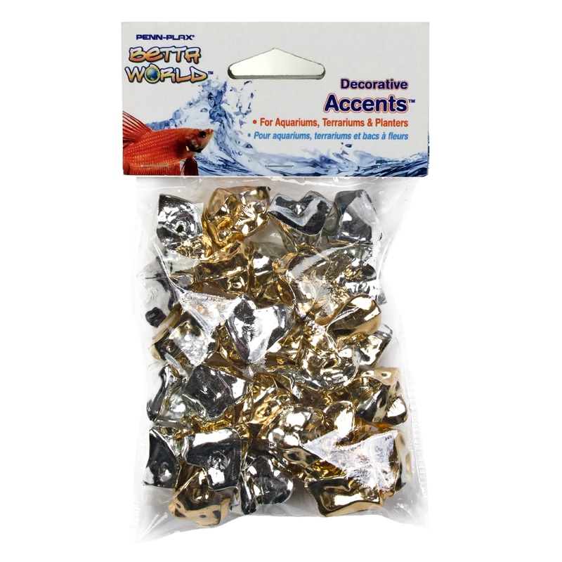 These aquarium decorative chrome colored chrome-a-stones beautify any aquarium with chic silver and gold stones these stones beautifully reflect the water adding interest and dynamics to your tank.
