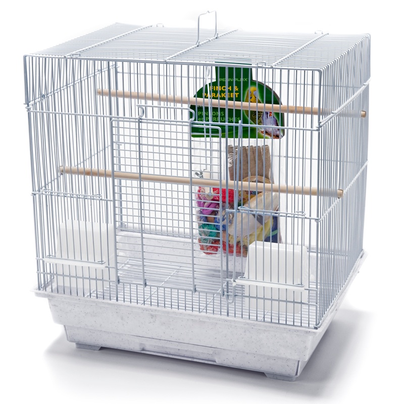 This square style kit comes with everything you need to keep your bird buddy happy and living his best life. It comes with multiple perches that can be adjusted, cuttlebone, a mineral treat, a sand perce cover, a calcium perch and a toy kabob!Bird cage sta