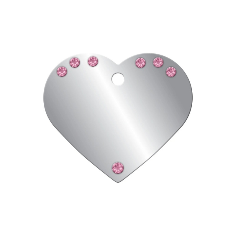 Personalised Pet Tag – Large Heart Chrome with Pink Crystals