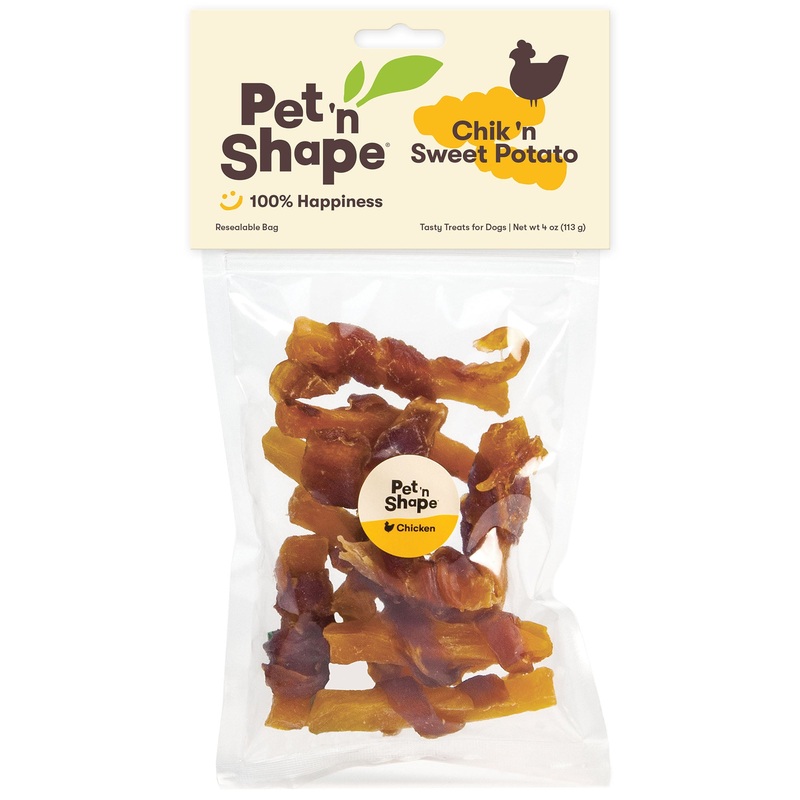 Chik ‘n Sweet Potato is a Pet ‘n Shape classic and fan favorite treat! Made from naturally delicious chicken breast wrapped around a bite-sized piece of vitamin-rich sweet potato, these grain-free chewy bites are perfect for dogs of all sizes. Great for puppies, adults and seniors, Chik ‘n Sweet Potato treats contain no artificial additives, preservatives, colors, or flavors. All Pet ‘n Shape treats are U.S. lab tested for safety and carefully roasted to ensure optimal quality and delicious flavor. Resealable packaging locks in freshness and is ideal for easy storage.