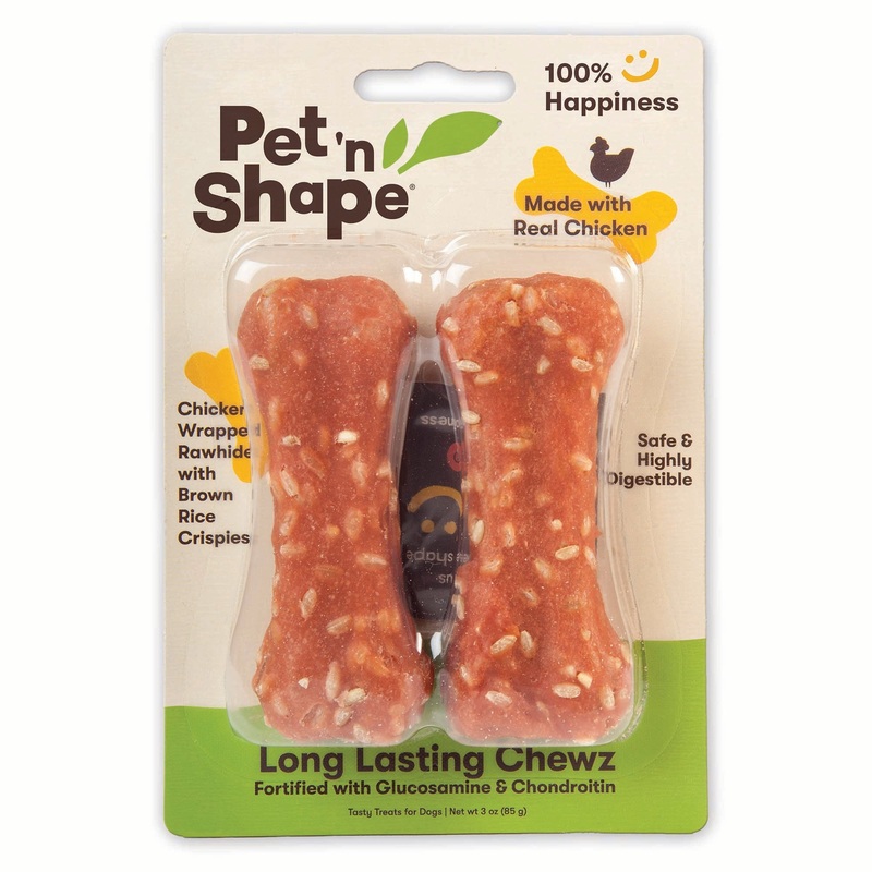 Pet ‘n Shape Long Lasting Chewz are designed to satiate your pet’s natural instinct to chew and provide a delectable distraction to keep them busy. Long Lasting Chewz feature a naturally delicious combo of chicken and brown rice crispies wrapped around a compressed rawhide bone. Pet ‘n Shape treats contain no artificial colors, additives, or preservatives and are free of any wheat, corn and soy. All products U.S. lab tested for safety; carefully roasted to ensure optimal quality and delicious flavor. Resealable packaging locks in freshness and is ideal for easy storage.