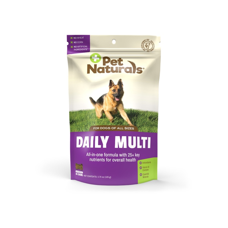 Your dog can be his best self at any age. Keeping him in peak condition takes activity and love. And of course, you can always add a little extra support with a chewable multivitamin like Daily Multi. This multivitamin and mineral supplement provides over 21 healthful nutrients for your dog, including antioxidants to support optimal health and a complete, balanced vitamin B complex.