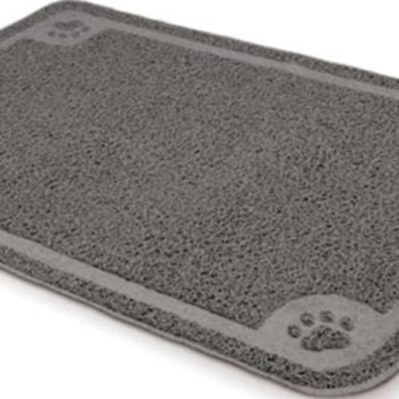 Minimize litter scatter and keep floors clean with a Petmate tufted Litter Catcher Mat created from a soft, rubberized material that is easy on paws. The webbed design traps litter scatters as your cat exits the litter pan preventing otter from scattering throughout your home. The soft, flexible surface cleans litter from the paws of your cat as it steps out of the litter box. Constructed using quality durable materials means this mat will last for years. Easy to clean simply shake the litter from the mat or vacuum it off. The mat can also be washed with cold water and then air dried to keep the mat from harboring odor-causing bacteria. Pet parents choose from either an extra large mat in gray or large in pumice stone.