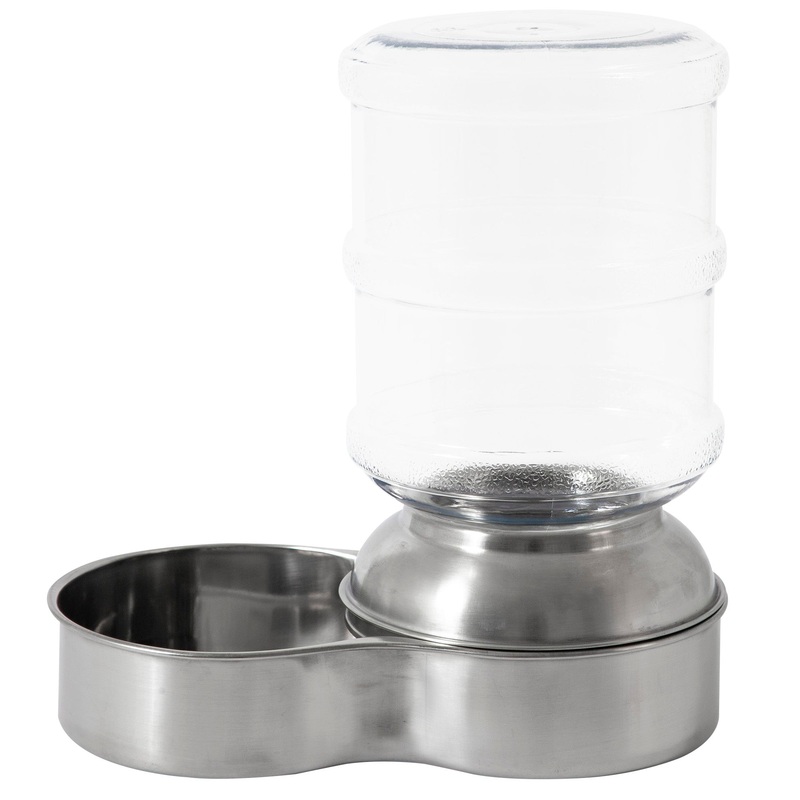 The Petmate Stainless Steel Replendish Waterer is perfect for pet parents that want to provide a constant flow of fresh water throughout the day for their pet even when they’re not home. The vet-recommended stainless steel base resists harmful bacteria growth and can be safely put into the dishwasher for easy cleaning and sanitizing at high temperatures. The Waterer features recessed areas for easy lifting and water filling; and non-skid rubber feet to keep spills and movement to a minimum. A decorative smoke-colored one-gallon bottle complements the stainless steel base. Easy to clean wide-mouth bottle. Made in the USA.PRODUCT NOTE: While the bowl is dishwasher safe; the Bottle is not. We recommend cleaning the bottle with a bottle brush and warm soapy water. Let air dry.