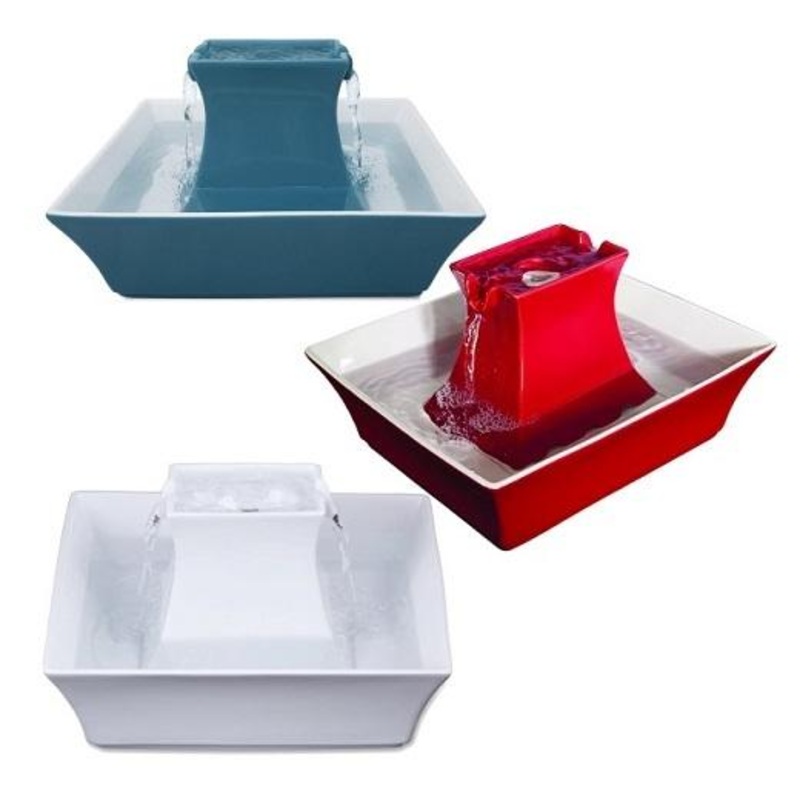 The Pagoda fountain continuously recirculates 70 ounces of fresh, filtered water. Best of all, the stylish ceramic design is easy to clean and looks great in your home. The upper and lower dishes provide two drinking areas for pets, and the patented dual free-falling streams aerate the water for freshness, which encourages your pet to drink more.