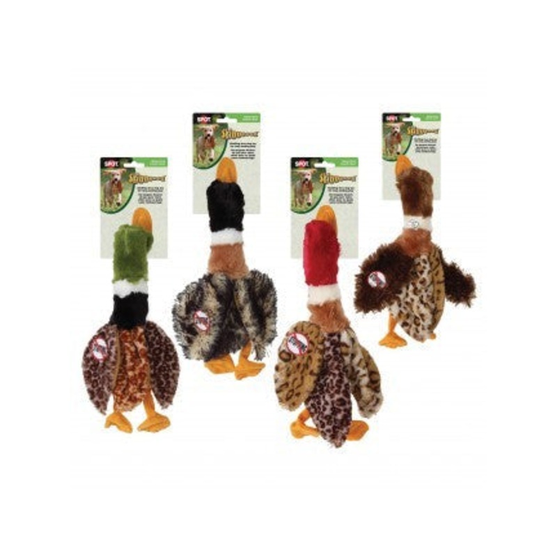 Skinneeez stuffing free dog toy satisfies a dogs natural hunting instinct. With no stuffing to rip out, they offer long lasting play. The realistic Duck design provides a flip flopping action dogs love. Comes in an assortment of 4 colors.