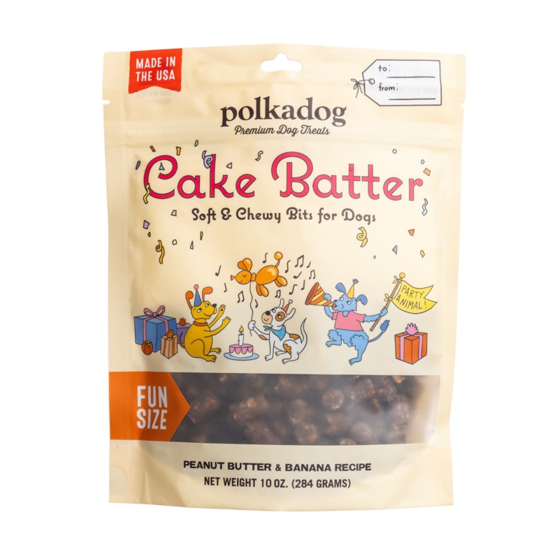Have your Cake [Batter] and eat it too! Youll have the most popular pup at the party if you show up with our soft & chewy peanut butter and banana Cake Batter bits! Whether its your furry friends birthday, gotcha day, or any other day of the week that ends