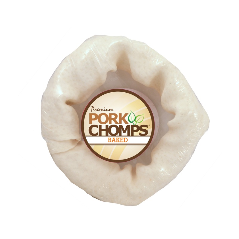 Premium Pork Chomps 6 Baked Bagels are fully digestible and the perfect rawhide alternative for your pup!! Pork Chomps are made from baked pork skin creating a healthy, low fat, high protein dog chew. This wholesome chew is made with limited ingredients, free of artificial flavors, dyes and preservatives, and preferred by dogs everywhere! Premium Pork Chomps are the long lasting rawhide alternative that will keep you pup constructively chewing for hours! In 2012, The University of Illinois College of Veterinary Science conducted a study which proved pork skin to be 99.9% digestible and significantly more digestible than beef rawhide. Offering a variety of sizes, shapes and flavors, Premium Pork Chomps is the chew dogs crave and pet parents can feel good about too! Safe and Healthy Premium Pork Chomps 6 Baked Bagels are the right size for Small dogs, Medium dogs, and Large dogs. Single Count Package. Ingredients: Pigskin, Sugar. Guaranteed Analysis: Crude Protein (Min) 75%, Crude Fat (Min) 2%, Crude Fiber (Max) 2%, Moisture (Max) 13%