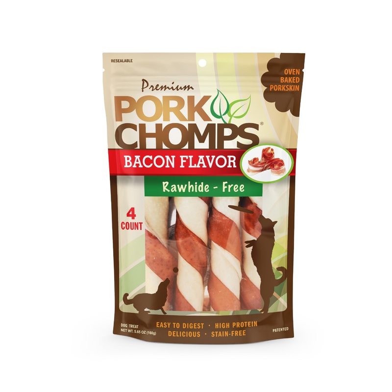 Pork Chomps 6-inch Baked Pork Skin Twists with Bacon Flavor wrap, 4 count Dog Chews