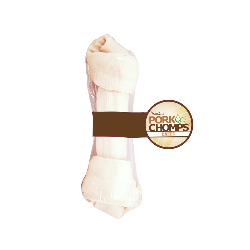 Premium Pork Chomps 8 Baked Knots are fully digestible and the perfect rawhide alternative for your pup!! Pork Chomps are made from baked pork skin creating a healthy, low fat, high protein dog chew. This wholesome chew is made with limited ingredients, free of artificial flavors, dyes and preservatives, and preferred by dogs everywhere! Premium Pork Chomps are the long lasting rawhide alternative that will keep you pup constructively chewing for hours! In 2012, The University of Illinois College of Veterinary Science conducted a study which proved pork skin to be 99.9% digestible and significantly more digestible than beef rawhide. Offering a variety of sizes, shapes and flavors, Premium Pork Chomps is the chew dogs crave and pet parents can feel good about too! Safe and Healthy Premium Pork Chomps 8 Baked Knots are the right size for Medium Dogs and Large Dogs. Single Count Package. Ingredients: Pigskin, Sugar. Guaranteed Analysis: Crude Protein (Min) 75%, Crude Fat (Min) 2%, Crude Fiber (Max) 2%, Moisture (Max) 13%
