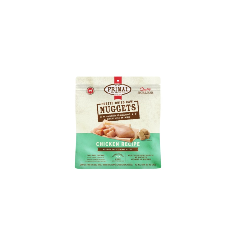 Shelf-stable and ready to serve just portion, shred, and rehydrate with water, Bone Broth, or Raw Goat Milk. Made with high-quality protein and Certified Organic produce, crafted especially for your canine.IngredientsChicken (with ground bone), Chicken Liv