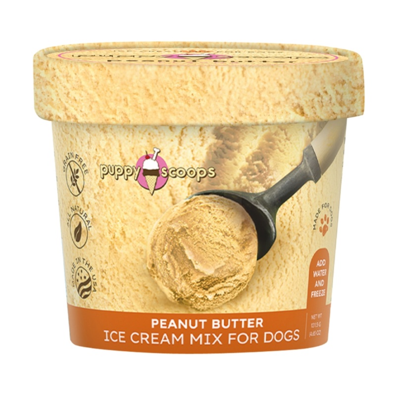 Peanut butter has always been a fan favorite for dogs everywhere! Well now they can enjoy this classic flavor as a smooth, creamy and dreamy frozen treat that they will go nuts for. A pint of Puppy Scoops in any flavor is the perfect gift for dog lovers and pet parents who have dogs and want to feed them exceptional dog food. Dog birthdays should be celebrated with cake and ice cream treats! Puppy Scoops is the perfect dog ice cream recipe for ice treats for dogs that deserve the very best! Just add water, freeze and enjoy!