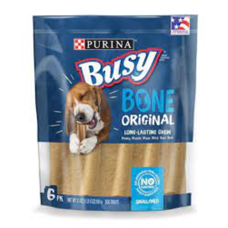 Dogs get swept up in the long-lasting fun of Busy Bone, where tasty twists and turns hide a yummy middle with real meat. The fun part is watching your dog get lost in his own little Busy world. This is your dog’s playful chewtime challenge. And with no rawhide and no FD&C colors this easily digestible chew treat is definitely good to the bone.