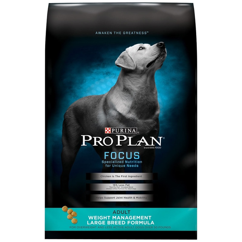 Specialized dry formula for overweight and less active adult large breed dogs over 50 pounds. Protein-to-fat ratio is optimized to maintain muscle mass during weight loss.IngredientsChicken, rice, whole grain wheat, poultry by-product meal, corn gluten mea