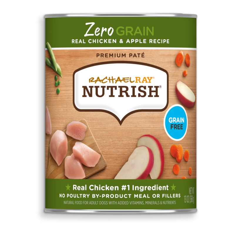 Rachael Ray Nutrish Premium Pat Zero Grain Real Chicken & Apple Recipe is a premium pat dog food made with real chicken as the #1 ingredient combined with apple, brown rice and real veggie pieces you can see with no added grains.ou can see.IngredientsChick