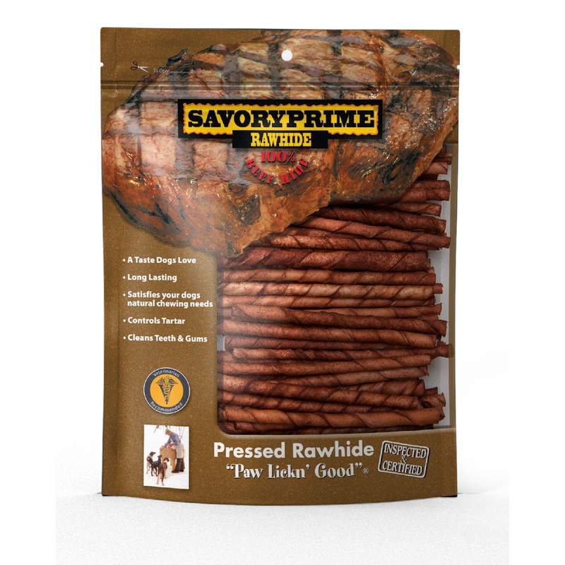 Dogs love Savory Prime Twist Sticks. These pressed beef hides are 100% natural and can last 3-4 times longer than other rawhide bones. Oure pressed bones are inspected and tested, following strict GFSI food quality standards, and come with a satisfaction g