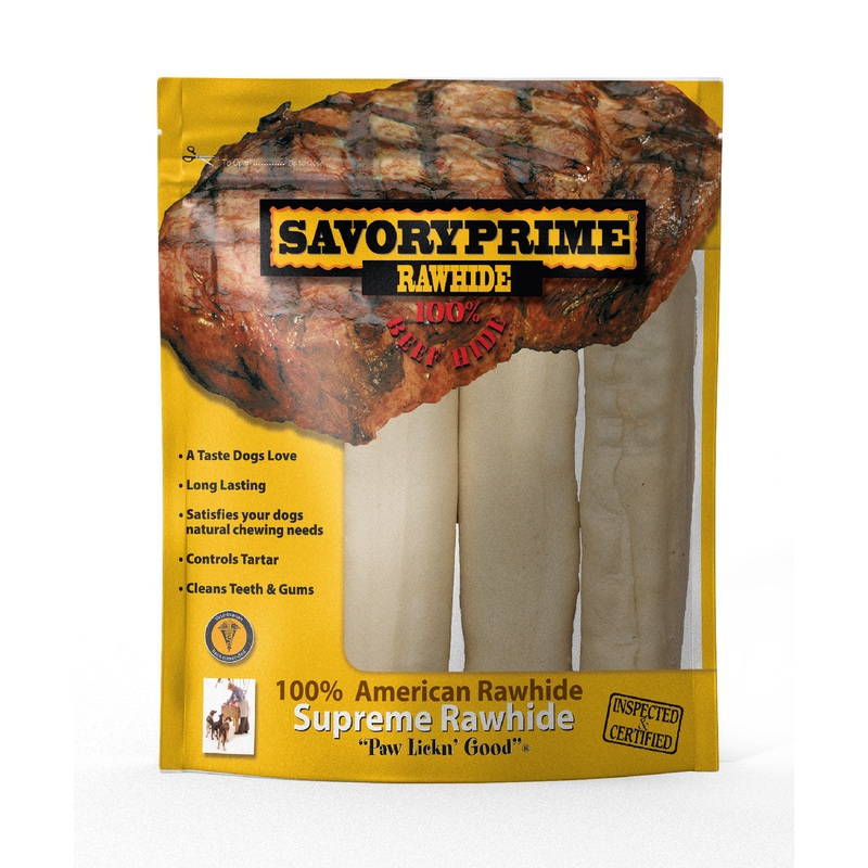 Dogs love Savory Prime Retriever Rolls. These rawhide chews come from 100% American prime beef hides, oven dried to perfection in our very own certified plant located in Mexico. All of our products are inspected and tested, following strict GFSI food quality standards, and come with a satisfaction guarantee. Savory Prime Rawhide controls tartar, helps clean teeth and gums, and satisfies your dog’s natural need to chew.