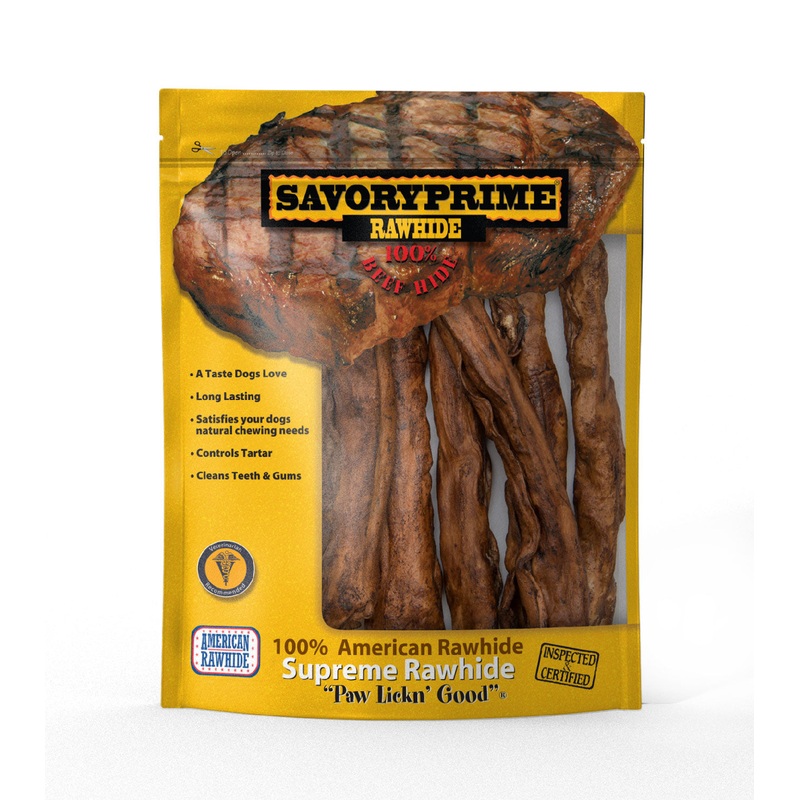 Dogs love Savory Prime Retriever Rolls. These rawhide chews come from 100% American prime beef hides, oven dried to perfection in our very own certified plant located in Mexico. All of our products are inspected and tested, following strict GFSI food quality standards, and come with a satisfaction guarantee. Savory Prime Rawhide controls tartar, helps clean teeth and gums, and satisfies your dog’s natural need to chew.
