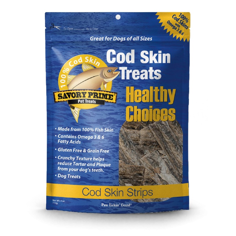 Our Cod Skin Treats are made from wild caught Pacific and Atlantic Cod. Our Cod Skin Treats have natural omegas, essential oils and nutrients; our treats promote healthy skin, coat, heart, and overall health of your dog. No preservatives or artificial ingredients.