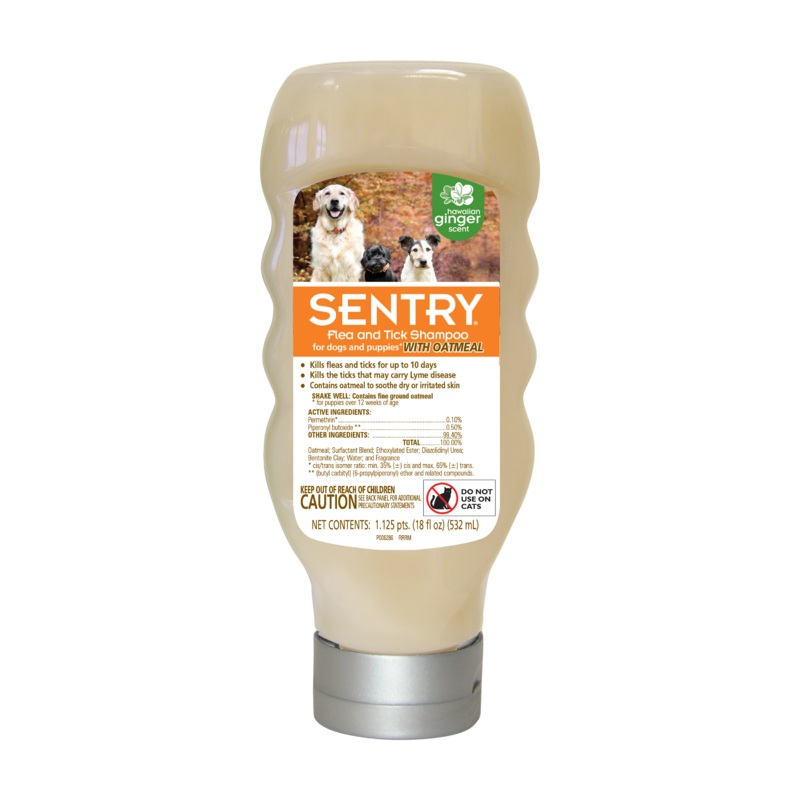 This rich, conditioning formula with oatmeal kills fleas and ticks that can harm your pet. The flea shampoo is ideal for dogs with sensitive skin. Not for use on cats or kittens. SENTRY Flea & Tick Oatmeal Shampoo for Dogs and Puppies has a great Hawaiian ginger fragrance. This flea and tick formula kills fleas and ticks for up to ten days.