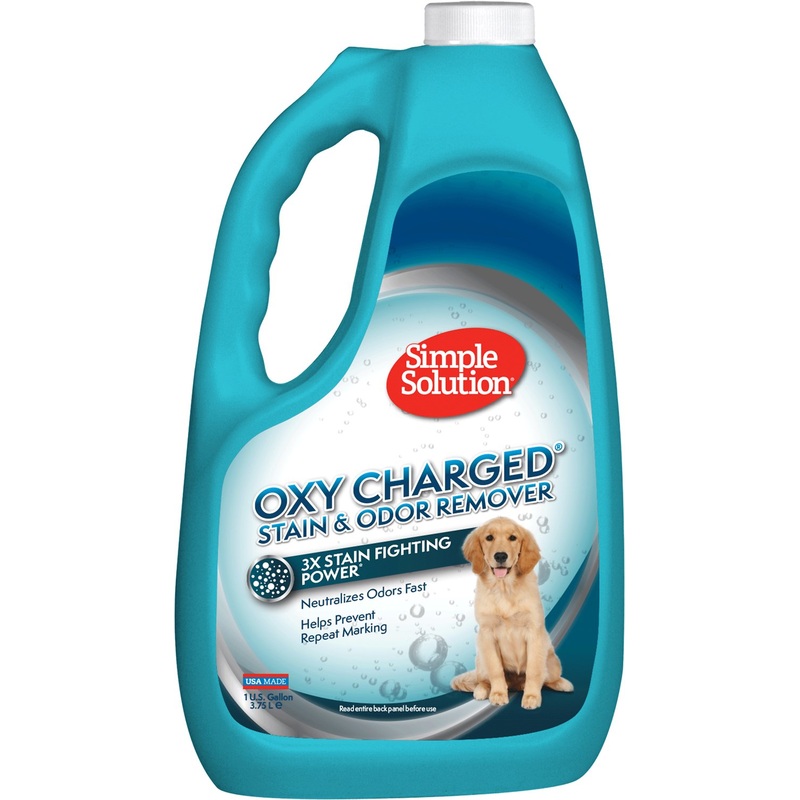 We love our furbabies, but not their messes. Simple Solution Oxy Charged Pet Stain and Odor Remover removes tough stains, and discourages repeat soiling and marking. A potent oxy formula removes urine, blood, feces, and vomit stains from carpets, bedding,