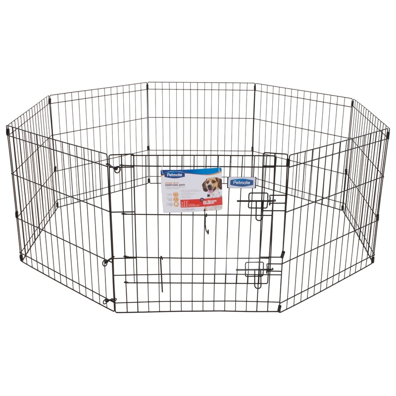 Give your pet a safe, dedicated space to run and play with the versatile Single Door Pet Exercise Pen from . Perfect for indoor or outdoor use, this exercise pen has one double-latch door that makes it easy for pets and pet-parents to enter and exit the pen when needed. The Single Door Exercise Pen is made of durable wire with a solid hinge design, making it effortlessly easy to set up and fold down for portability and storage. It’s snap hook assembly feature can attach the pen to any wire crate to give your pet even more room. Available in a variety of heights for dogs of all sizes.