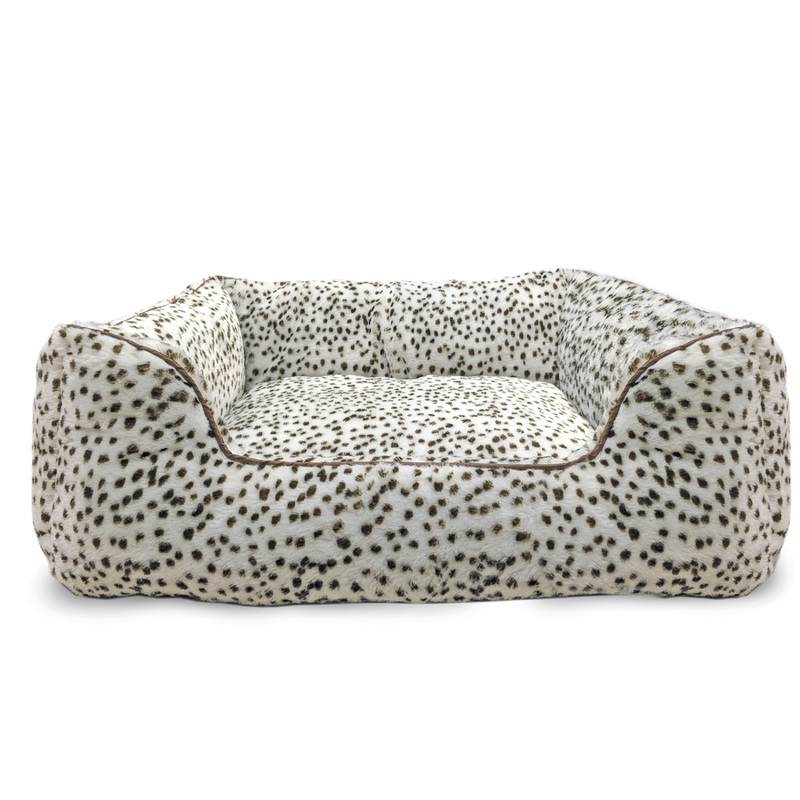 Soft plush leopard design. Easty step in with high walls for comfort and security. Made with 100% recyclable fill and machine washable.